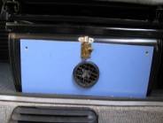 Elektra Alle in het interieur benodigde elektra is uitgevoerd in 12V. Om bij langer verblijf op de camping verzekerd te blijven van een voldoende opgeladen accu is een acculader aan boord. Voor het installeren hiervan is een 220V stopcontact aan de zijkant van het keukenblok achter de bestuurdersstoel aangebracht. Aan de recreatieaccu is eveneens een vaste aansluiting voor de acculader aangebracht. De recreatieaccu is onder de bestuurdersstoel geplaatst. De recreatieaccu wordt tijdens het rijden gevoed door de dynamo. Eer relais zorgt ervoor dat eerste de autoaccu wordt opgeladen en dat geen stroom van de autoaccu naar de recreatieaccu kan vloeien. De stroomvoorziening is beveiligd door twee zekeringenkastjes met 5 zekeringen. Beide kastjes worden door de recreatieaccu van stroom voorzien. Op het zekeringkastje dat zich op de console van de bestuurdersstoel bevindt zijn het keukenblok en een op dieselolie werkende heteluchtkachel aangesloten. Deze laatste is onder de bijrijderstoel geplaatst met de uitstroomopening naar achteren.
