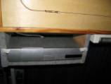 De satellietontvanger en de TV hebben hun eigen aansluiting c.q. stopcontact. Voor de andere apparaten zijn op 2 plaatsen 12-volts stopcontacten geļnstalleerd. Er zullen maar enkele apparaten tegelijk worden gebruikt, zodat dit aantal meer dan voldoende is. Aanvankelijk is gereisd met een kleine zwart-wit TV en een analoge antenne, waarvoor een signaalversterker is ingebouwd (zie foto rechterspotje). Deze is nog steeds ingebouwd omdat verwijderen meer schade zou veroorzaken dan het laten zitten. |